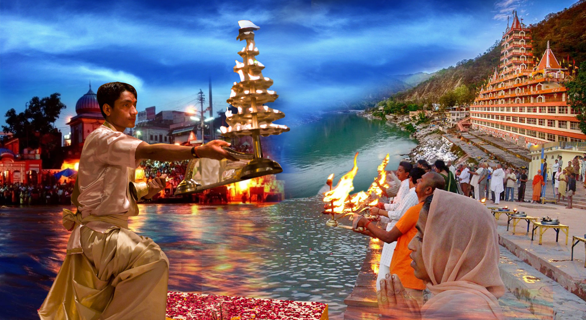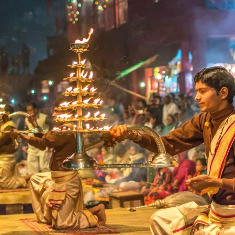 Ganga darshan is a devotional that uses fire as an offering . it is usually made in the form of a lit lamp, and in the case of the Ganges River
